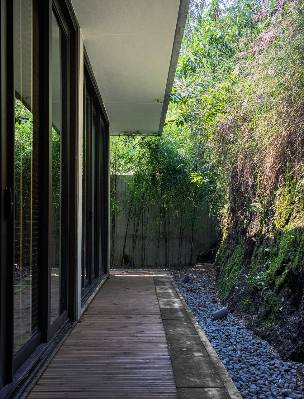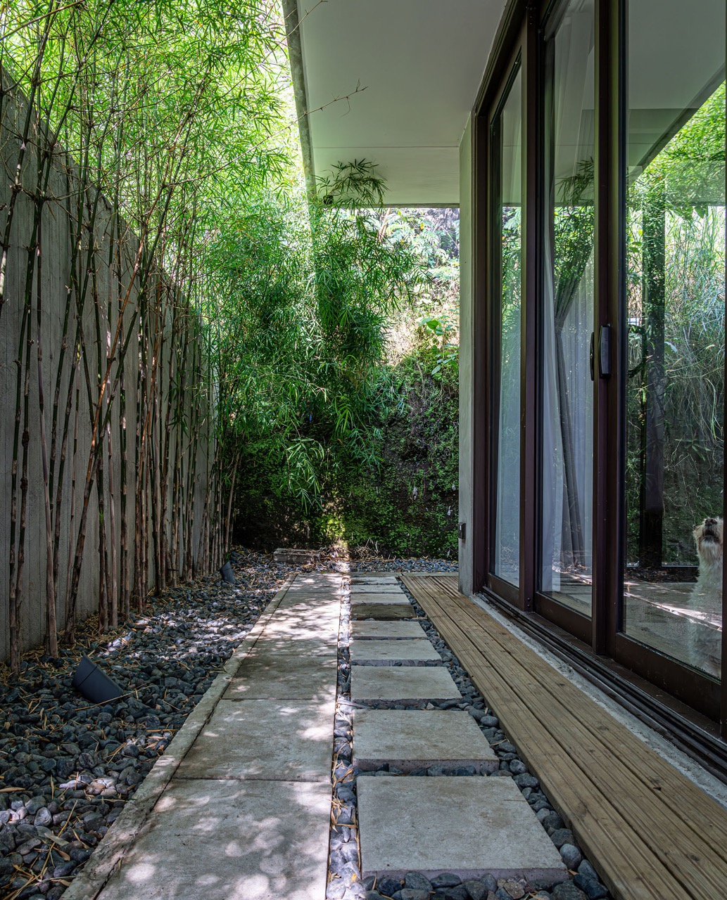 “The dogs are primarily considered as the “home owners”. The house incorporates dog fences, while the cabinets with open bottom shelves act as the dog’s nook. The garden and lanai serve as the dog’s play area. The landscaping is also now a home to local birds, which became a haven to build their nests.”