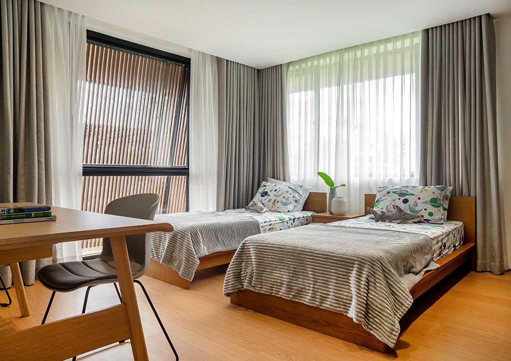 The design is contemporary Filipino architecture, with features adapting to the tropical setting while reflecting the vernacular. All bedrooms are employed with a “sibi.” The main spaces are oriented toward the north, while the lanai and garden are located on the north-east, for the morning sun.