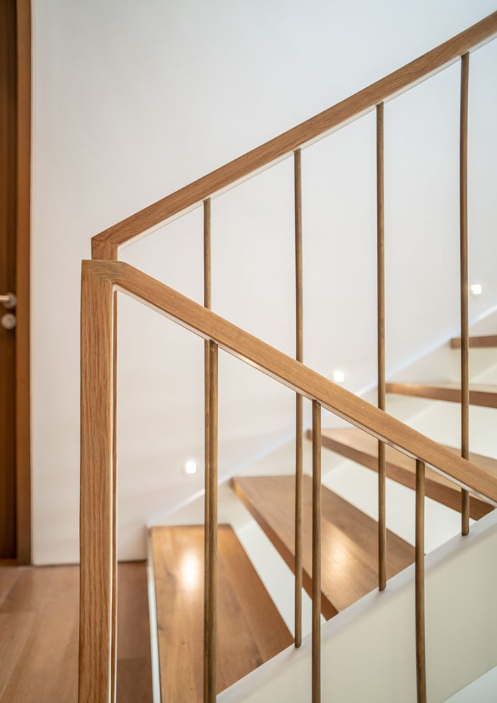 Private spaces are located on the upper floors with a balcony on the 3rd floor, which serves as an intimate space for the family. Operable wood louvers separate the family room ans the stairs, with an option to control the amount of sunlight.