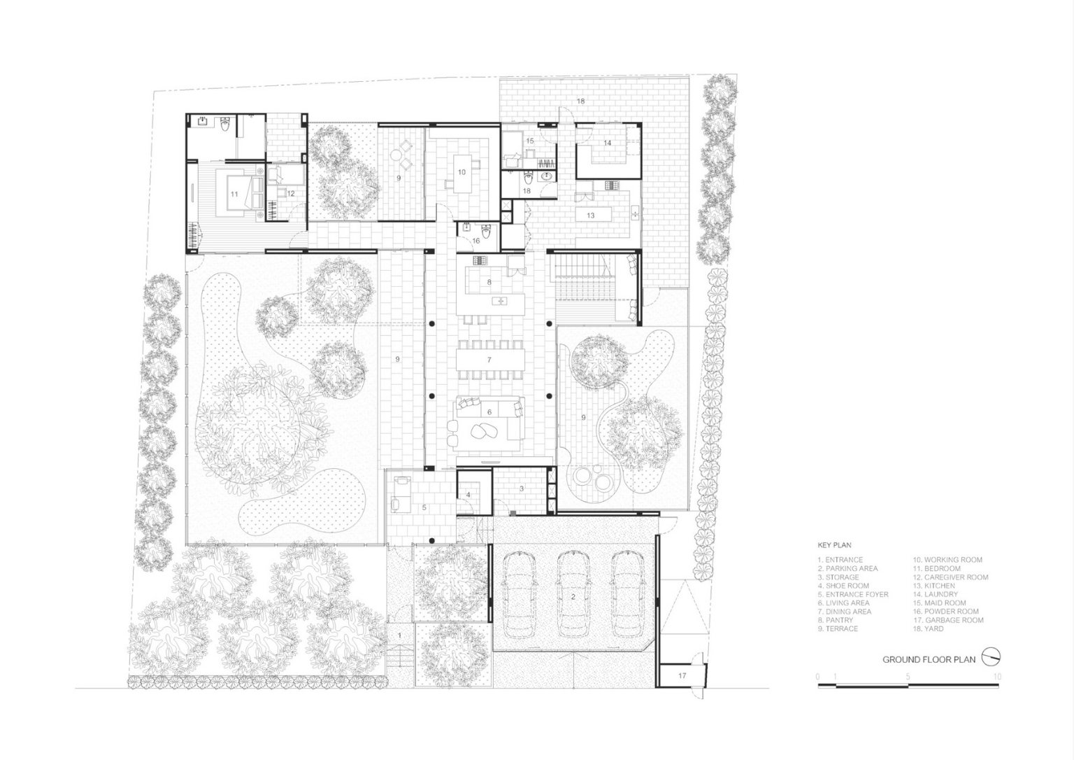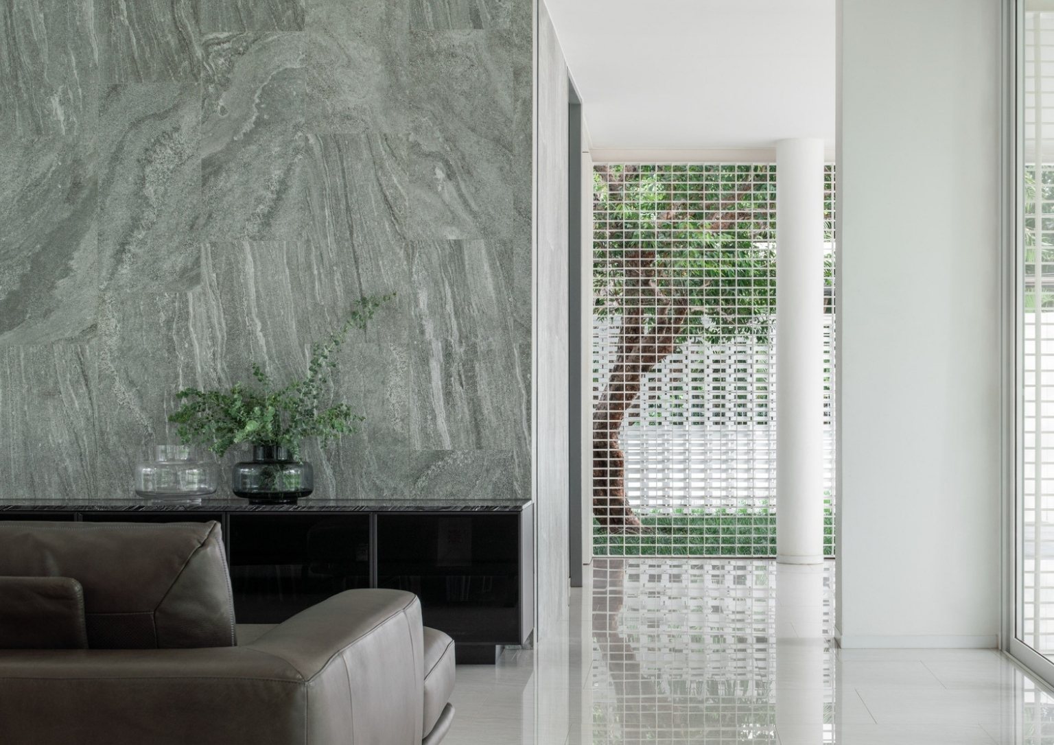 The Semi-Private Gardens, meanwhile, are veiled in vertical fins restricting views into the living room. The central and largest court is for exclusive eyes only. The family members and those invited are the only ones allowed to experience the space within.