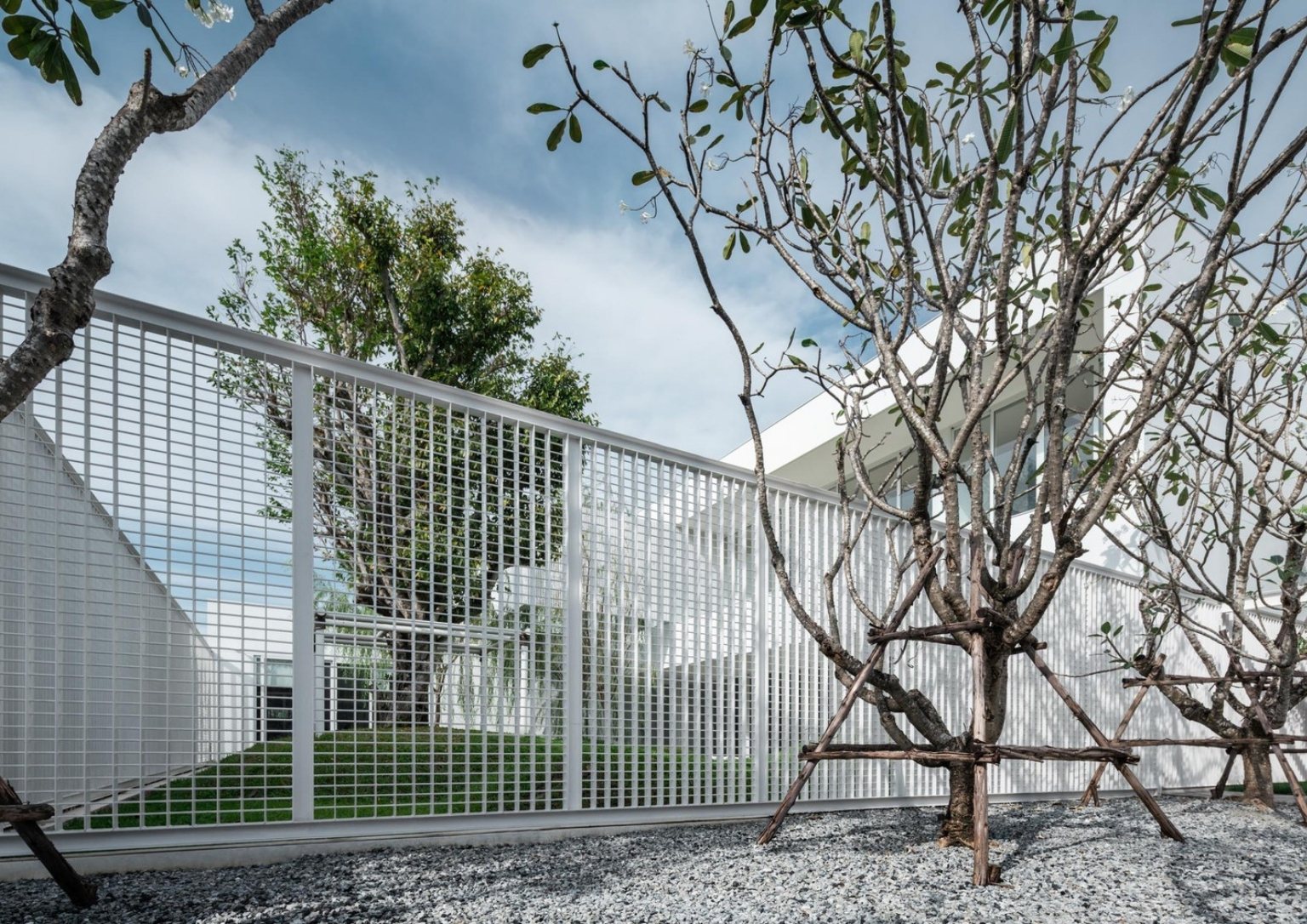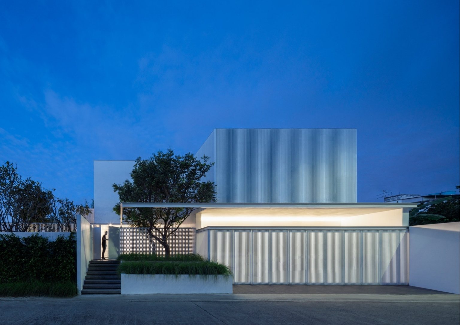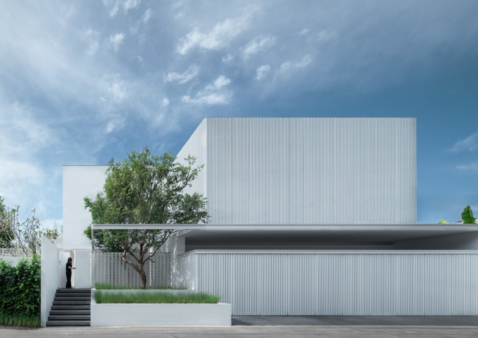 Veil House is a two-story residential structure in Thailand. The architect describes it as a house of modest plans with ambitious social implications. It follows a standard L-shaped plan which reveals layers of complexity upon closer inspection. The architect encapsulated the house with gardens instead of arranging it along the site’s perimeter around a central court and avoiding the surroundings. The gardens are not hidden away but are to be shared.