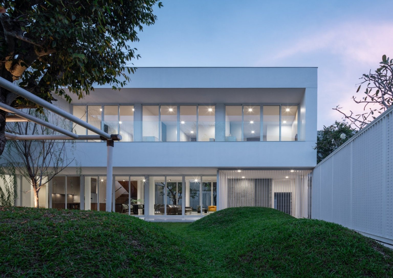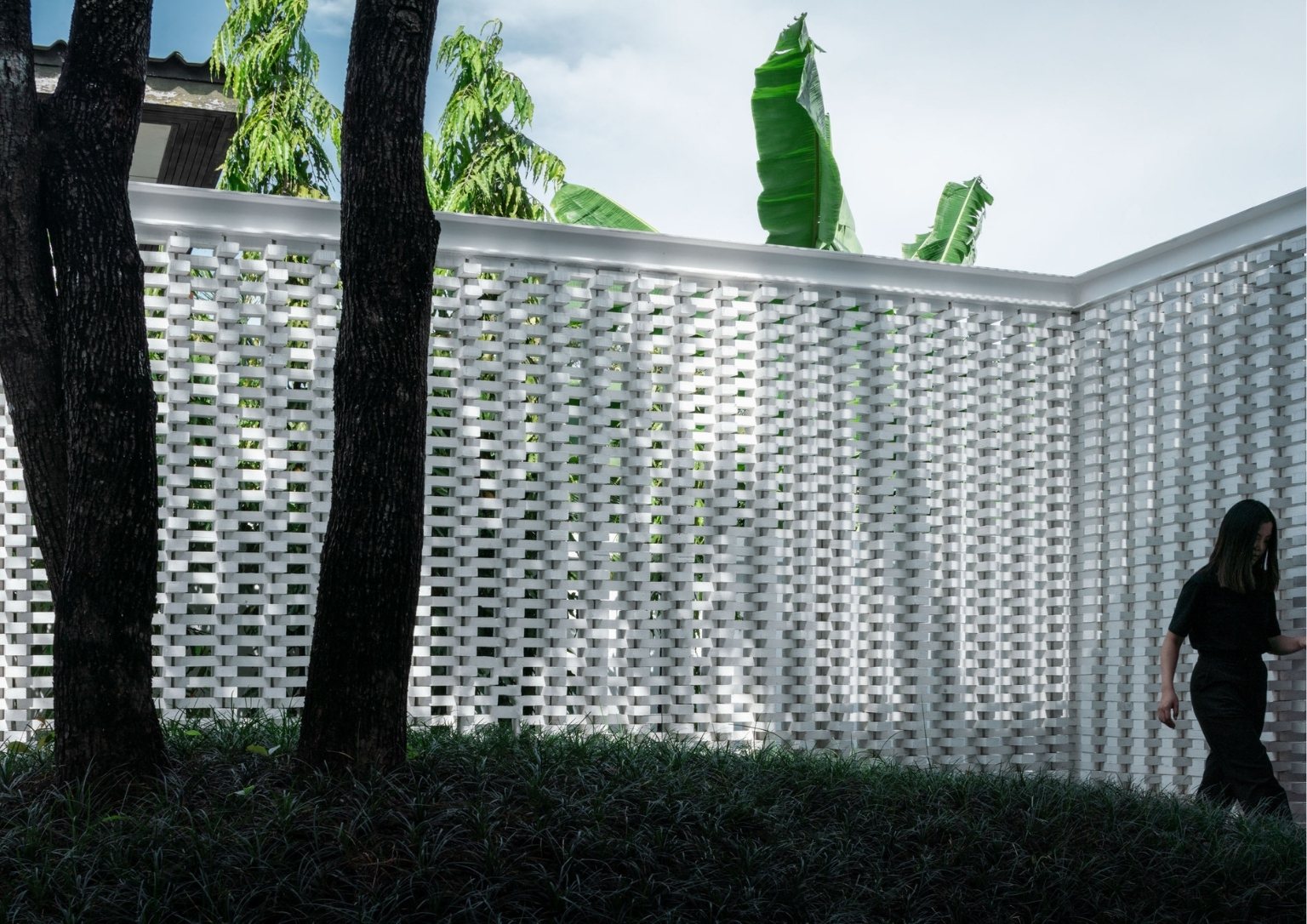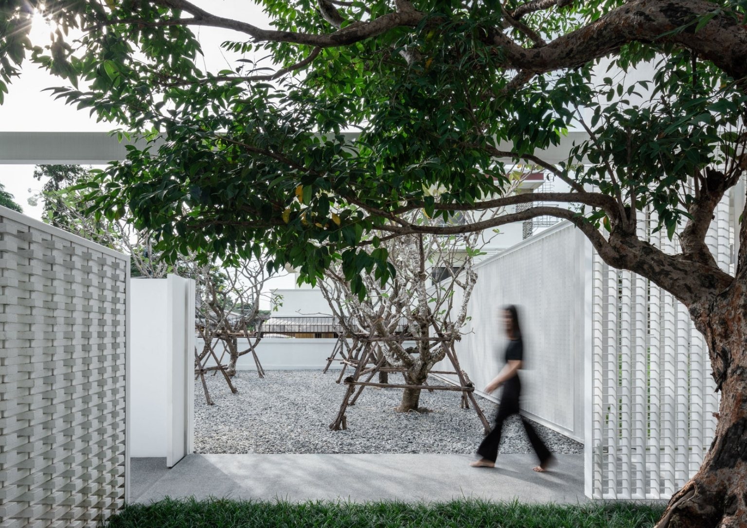 Veil House is a two-story residential structure in Thailand. The architect describes it as a house of modest plans with ambitious social implications. It follows a standard L-shaped plan which reveals layers of complexity upon closer inspection. The architect encapsulated the house with gardens instead of arranging it along the site’s perimeter around a central court and avoiding the surroundings. The gardens are not hidden away but are to be shared.