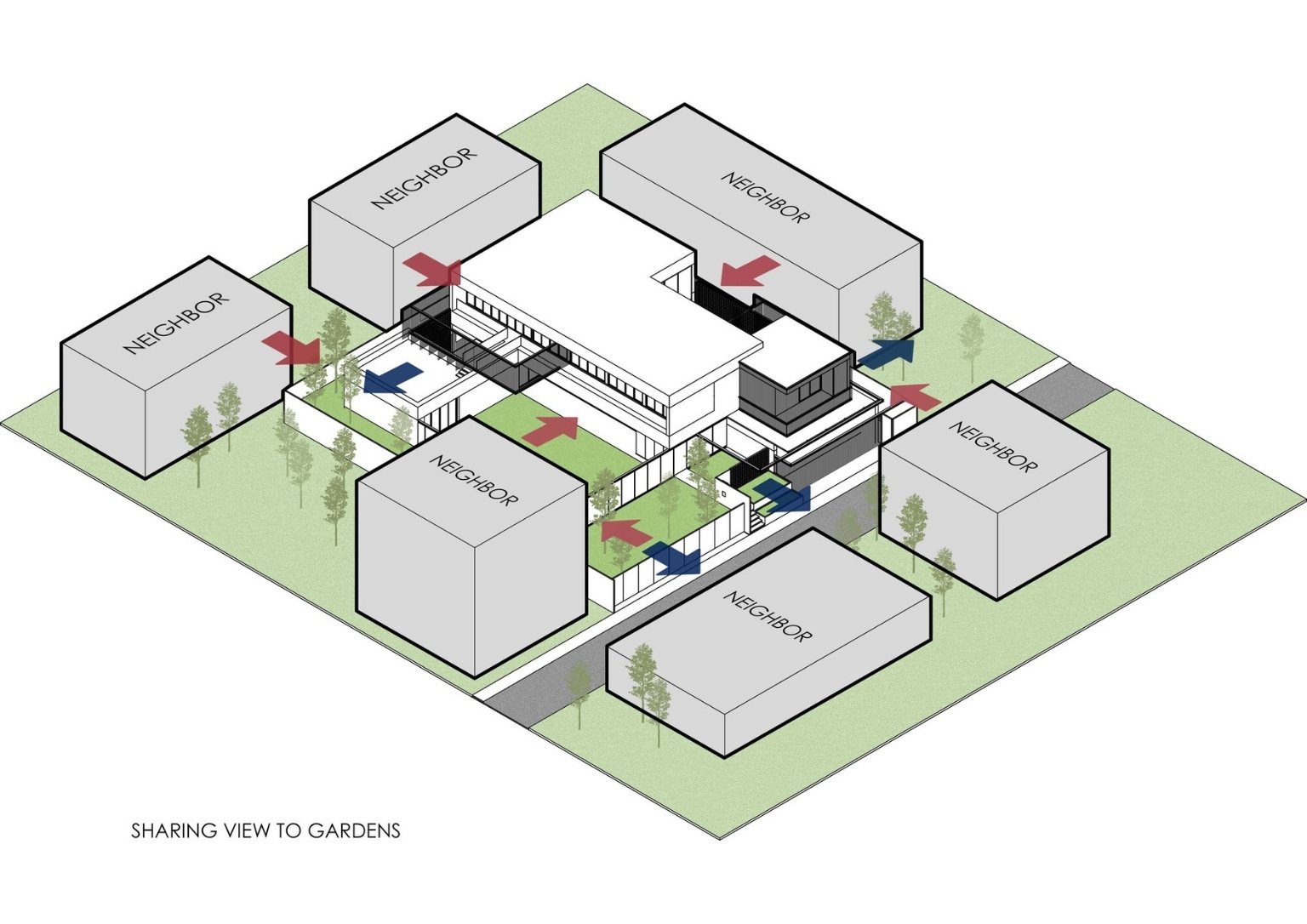 Ayutt and Associates Design explains preserving privacy while allowing this dialogue with the neighbors has been a challenge. This project is not intended to be unicentric which adds little value to the community. The house is meant to respond not only to one family but also to consider the surrounding families within the neighborhood.
