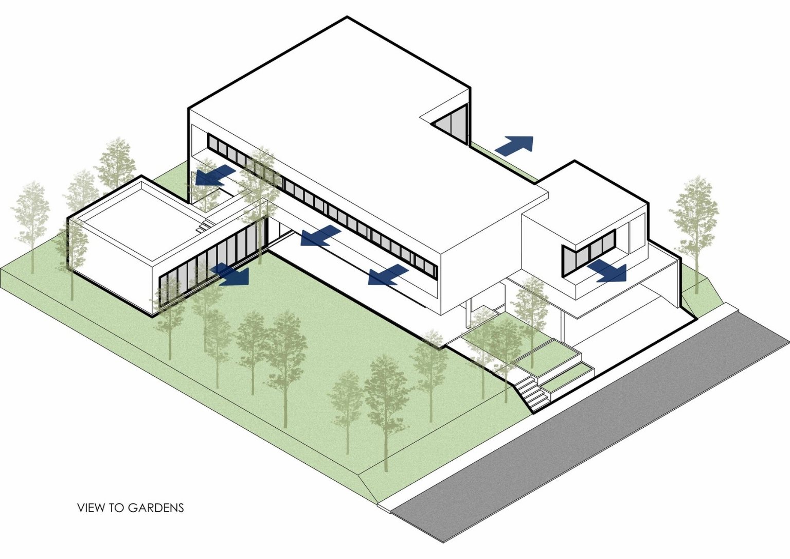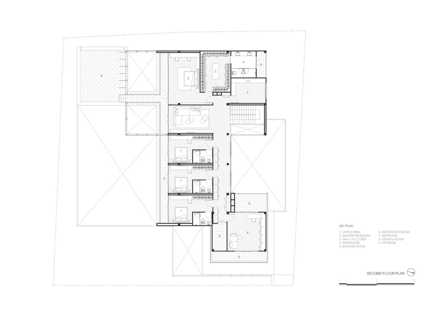 Sky Garden is the final layer of the house and it is the most private. It is only available to the owner. Other members of the family do not have access to this room. The view from the master bedroom is complexly layered resulting in a refined simplified view of lush greenery.