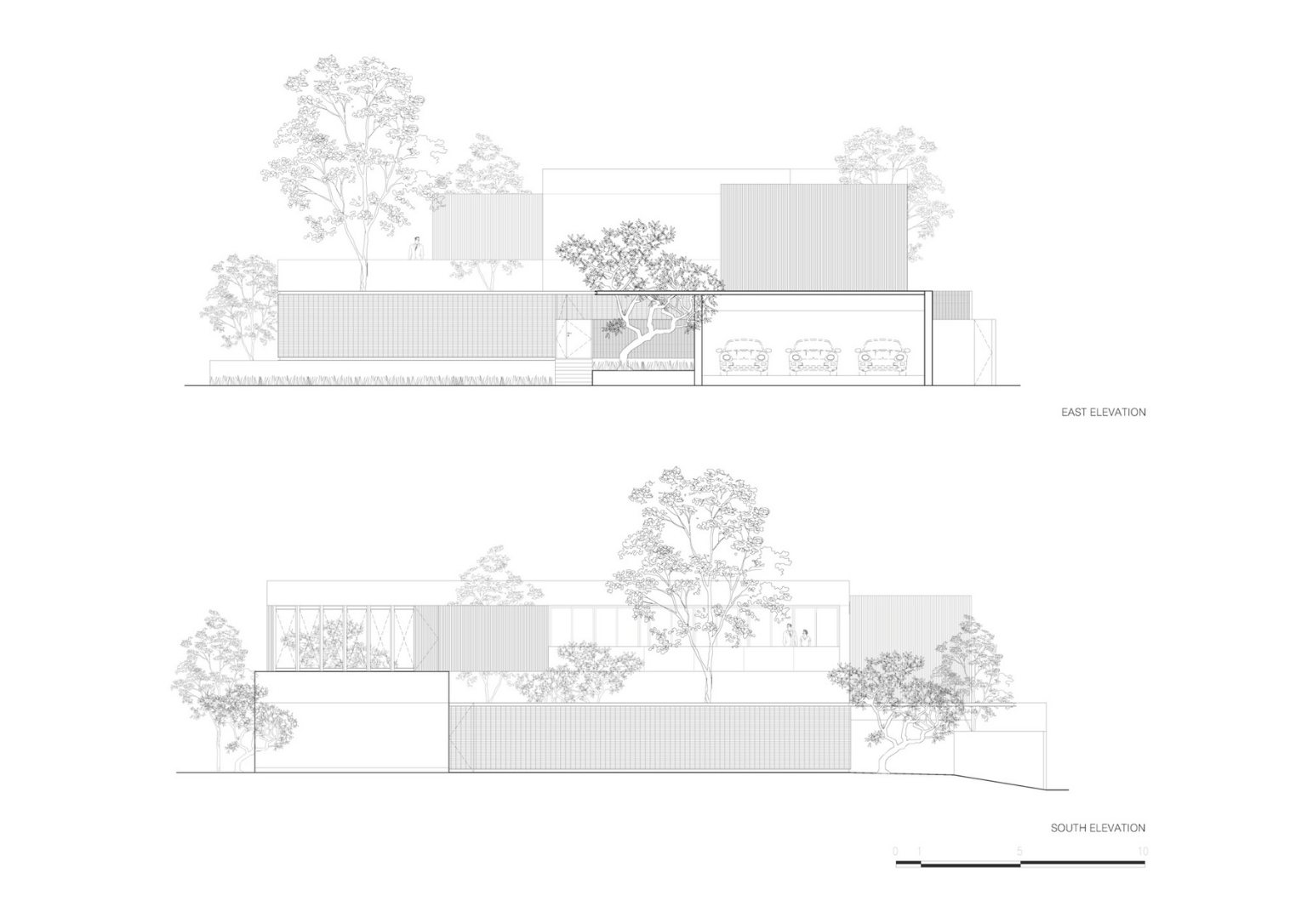 The house appears to be segregated if looked at from the road and the neighboring windows. Green pockets fragmented into levels of privacy, admitting views and access based on their relationship with the owner. When viewed from the inside, however, the occupants of the house can enjoy continuous, uninterrupted views.