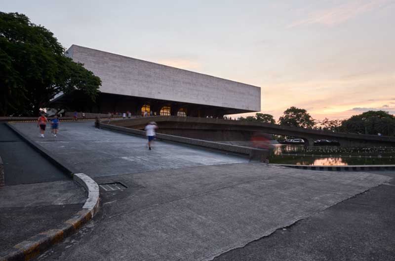 The Cultural Center of the Philippines is the brainchild of Philippine First Lady Imelda Marcos and came into being with President Ferdinand Marcos’ Executive Order No. 30. Its purpose was to promote and preserve Filipino arts and culture. It was built from 1966 to 1969 and designed by two National Artists, Leandro Locsin for the architecture and Ildefonso Santos Jr. for the landscape architecture.